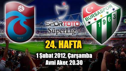 Spor Toto Süper Ligde Trabzonspor Bursaspor’u 2-1 mağlup etti. Avni Aker Stad’ında oynanan maçta Trabzonspor’un golleri 30 ve 66 dakikada Giray atarken Bursasporun tek golü 54. Dakikada Ozan İpek’ten geldi. Trabzonspor bu sonuçla puanını 42’ye çıkarırken Bursaspor 29 puanda kaldı.